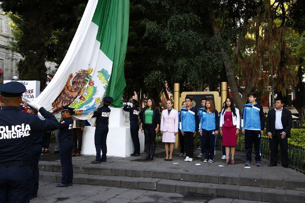 Izan bandera a media asta en el Zócalo capitalino y realizan guardia de honor y ofrenda floral en el Parque Cultural Movimiento Estudiantil 1968, rememorando a los estudiantes del 68