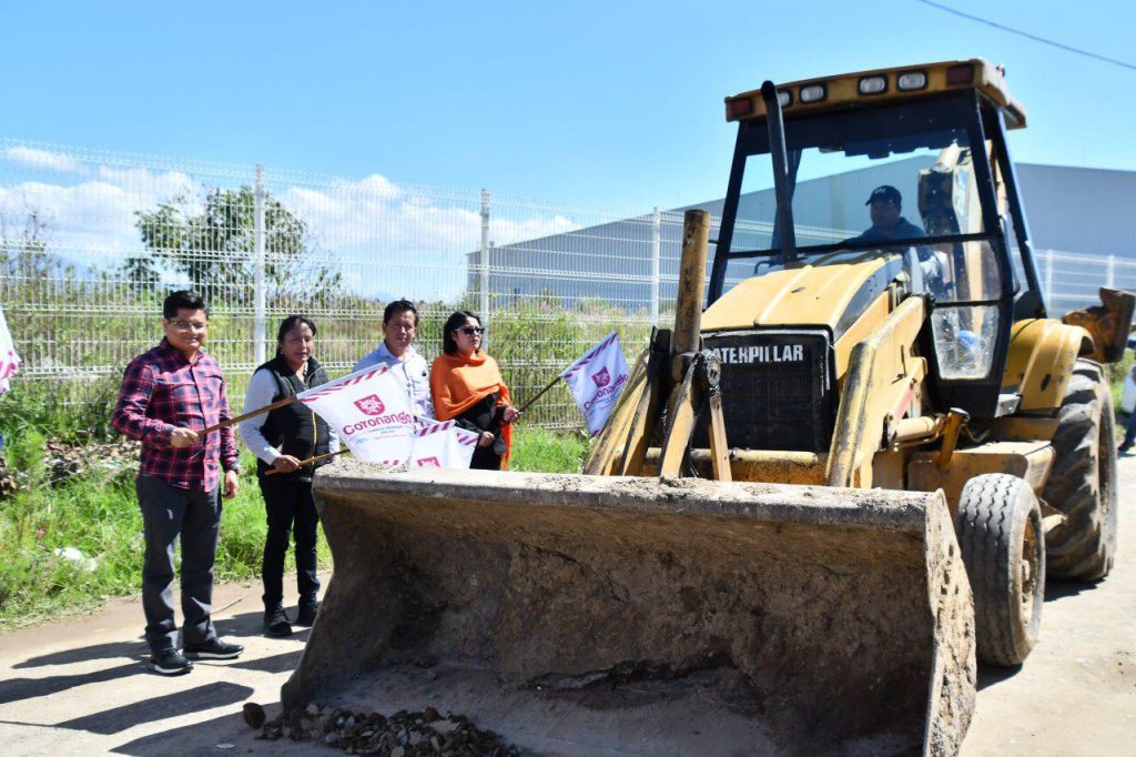 En benefició de más de tres mil habitantes el presidente municipal de Coronango, Antonio Teutli Cuautle, dio el banderazo para la construcción con adoquín de la calle Camino Nacional de la junta auxiliar de San Francisco Ocotlán.