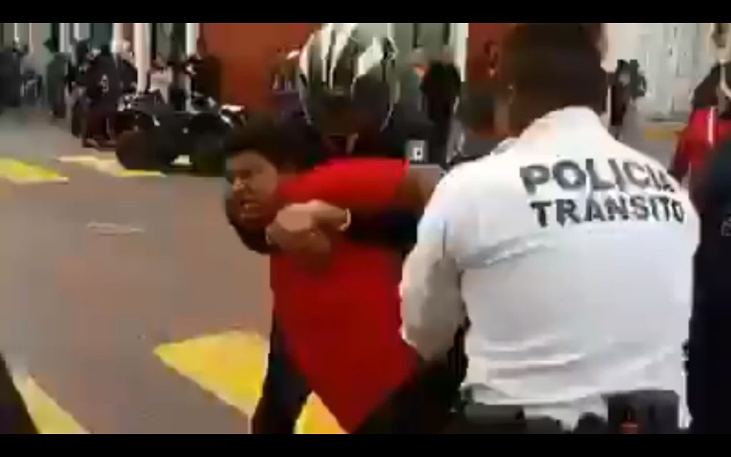 Los uniformados se encontraban en el cuadrante de la Avenida Miguel Hidalgo y 5 norte cuando advirtieron a un ciudadano el uso incorrecto que hacía de la ciclovía, lo que provocó la molestia y el reclamo hacia los elementos.