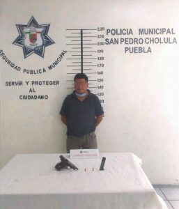 Resultado de una oportuna intervención de Policías Municipales de la Secretaría de Seguridad Ciudadana de San Pedro Cholula, se aseguró a un hombre que manejaba en estado de ebriedad y realizaba detonaciones con un arma de fuego.