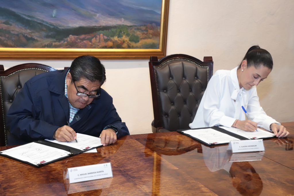 El gobernador Miguel Barbosa Huerta y Claudia Sheinbaum Pardo, jefa de Gobierno, firmaron un convenio de coordinación en la materia