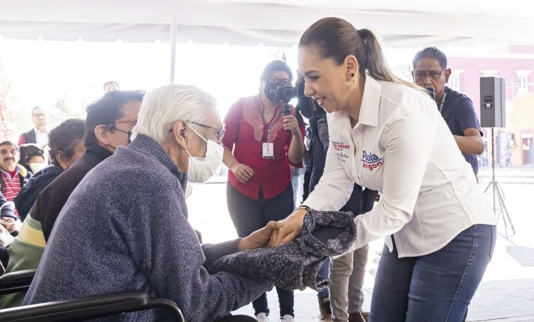 San Pedro Cholula, Puebla.- Este lunes, la Presidenta Municipal Paola Angon, acompañada de la Presidenta Honoraria del DIF, María de la Barreda, regidores, síndico y miembros del Patronato del DIF Cholula llevaron a cabo la primera entrega del programa Abraza un Abue, con el objetivo de repartir prendas abrigadoras a la población menos favorecida, a fin de procurar el bienestar de las familias cholultecas.