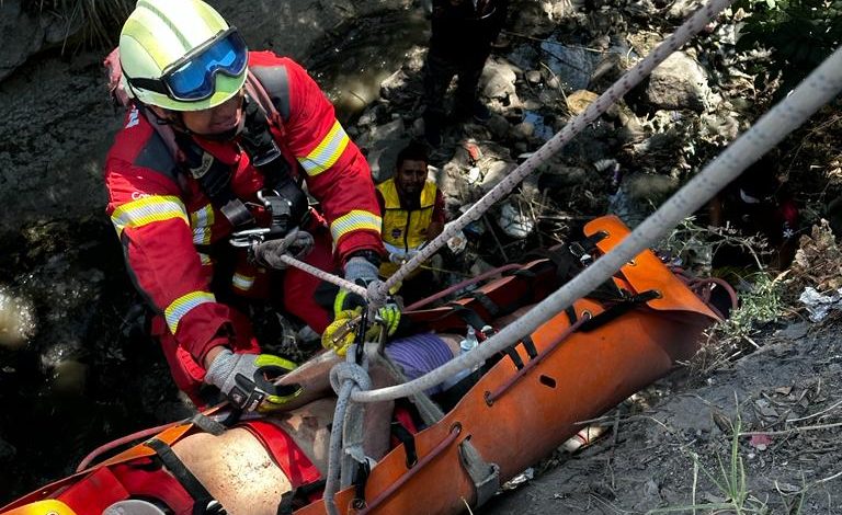 Una vez rescatado, el adulto mayor recibió atención prehospitalaria, por parte de paramédicos de SUMA, debido a que por la caída sufrió varias fracturas.
