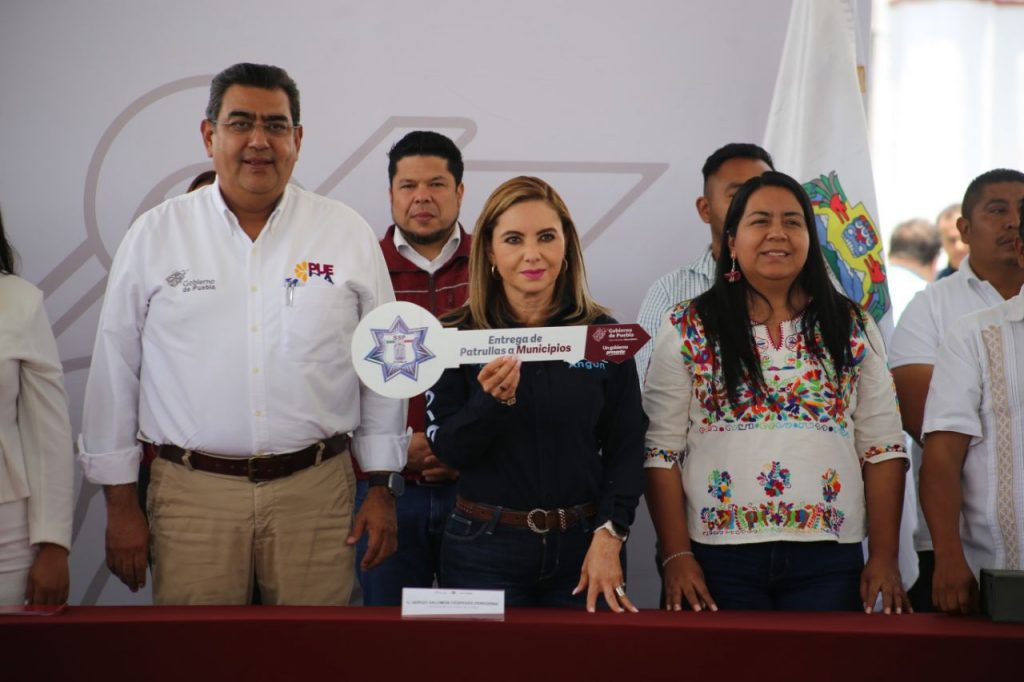 San Pedro Cholula, Puebla.- Tras encabezar, junto al gobernador, Sergio Salomón Céspedes Peregrina, el Martes Ciudadano en la Plaza de la Concordia de San Pedro Cholula, la Presidenta Municipal Paola Angon recibió cuatro patrullas por parte del mandatario estatal, a quien agradeció nuevamente por la suma de esfuerzos en favor de la tranquilidad de las familias cholultecas.