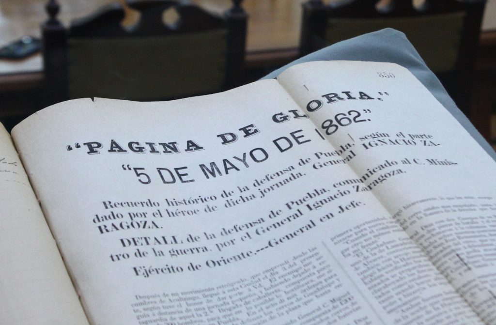Visitantes podrán conocer la exposición “Estampas heroicas. Limpieza y conservación de documentos”, donde se muestra la publicación periódica titulada “Páginas de Gloria. 5 de Mayo de 1862”, en el que se detalla la defensa de la ciudad a cargo del General Ignacio Zaragoza, también el Decreto emitido por Benito Juárez, Presidente Constitucional, por el que se declara a Puebla como estado de sitio, además de algunos acuerdos de Cabildo donde se establecía la entrega de fondos del Ayuntamiento para cada soldado herido en la Campaña.