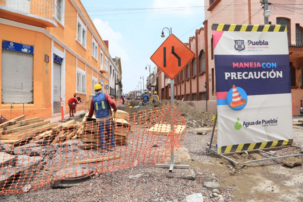 Actualmente, Agua de Puebla realiza el tendido de tubería, cimbrados de pozos de visita e integración de registros para descargas domiciliarias sin la interrupción del suministro de agua potable y drenaje.