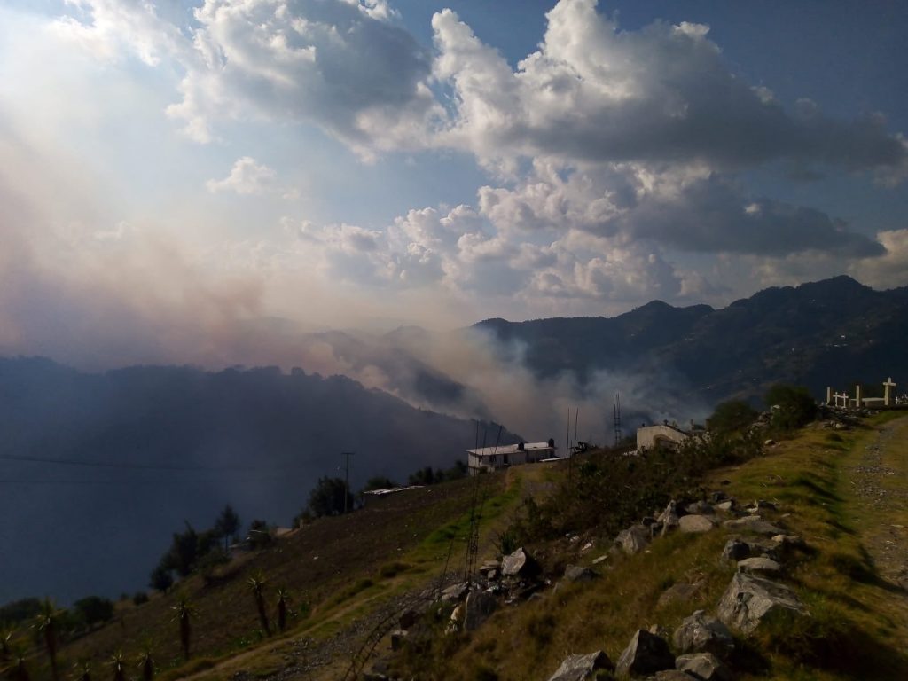 “80 combatientes de la SMADSOT, en coordinación con personal de la Comisión Nacional Forestal (CONAFOR) y la brigada rural de Zacatlán libran una batalla contra las llamas, labor que se dificulta por los vientos de más de 40 kilómetros por hora y el accidentado terreno”, explicó la dependencia.