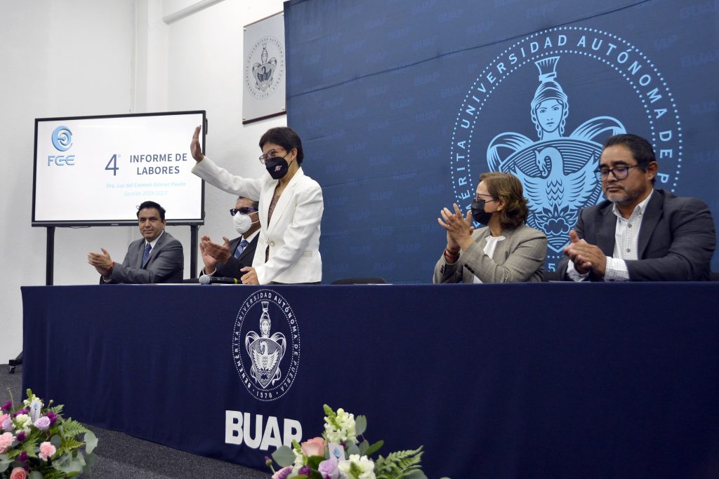Al rendir su informe, Luz del Carmen Gómez Pavón dio a conocer la oferta educativa de la FCE, conformada por cinco programas de licenciatura -dos en proceso de acreditación- y cuatro de posgrado registrados y reconocidos en el Sistema Nacional de Posgrados. La matrícula es de 3 mil 700 alumnos en licenciatura y 73 en posgrado. La Licenciatura en Electrónica y la Ingeniería en Mecatrónica tienen el nivel 1 y 1 plus en el examen EGEL Ceneval, respectivamente.