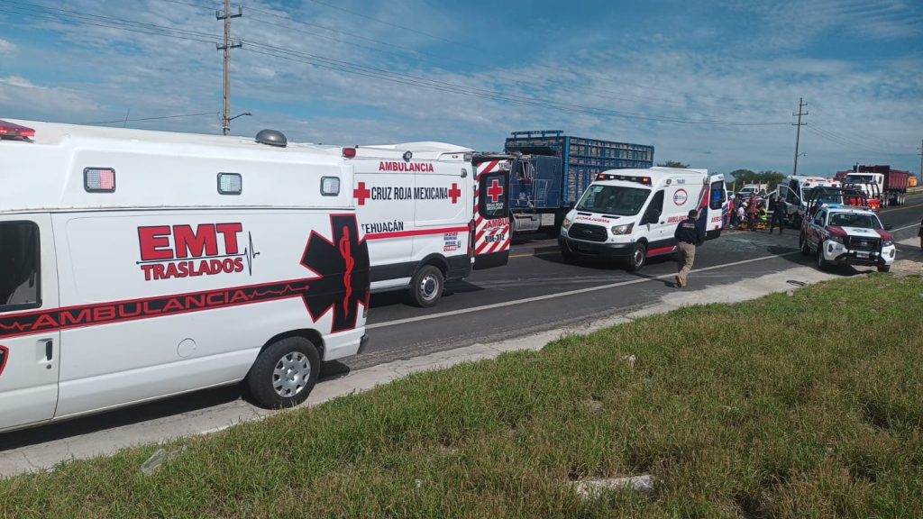 Al menos cinco personas muertas y nueve lesionadas, es el saldo preliminar que dejó un accidente en la Carretera Federal Tehuacán-Orizaba, Villa Alegría (zona de Santiago Miahuatlán).
