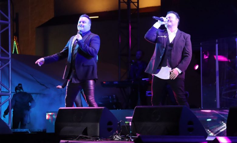 El dúo de Tulancingo Hidalgo, abrió su espectáculo con el tema Te adiviné, siguiendo con Te quiero mucho mucho y Contigo, poniendo un ambiente romántico para el disfrute de las familias, visitantes y parejas asistentes.