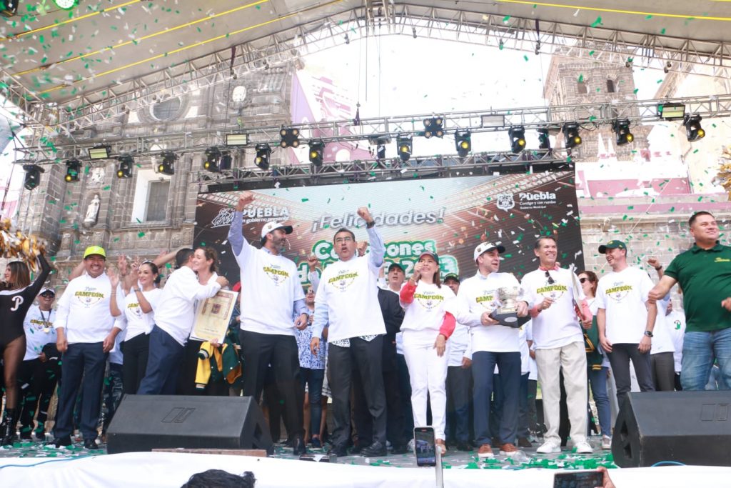 El mandatario estuvo presente en el desfile de celebración que realizó el conjunto de beisbol en el Centro Histórico de Puebla