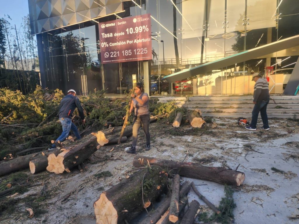 Debido a fuertes ráfagas de viento superiores a los 45 km/h, este sábado se registró la caída de árboles, ramas y palmeras en diversos puntos de la ciudad de Puebla, así como una lona de anuncio y techumbre en el Parque Toboganes en la Unidad Habitacional La Margarita.
