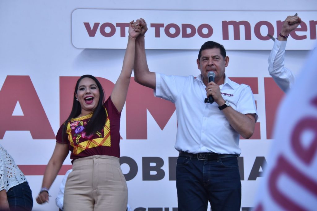 El Parque Soria sirvió de escenario para albergar a más de 10 mil cholultecas que se dieron cita para recibir a Tonantzin Fernández, así como al candidato morenista a la gubernatura de Puebla, Alejandro Armenta.