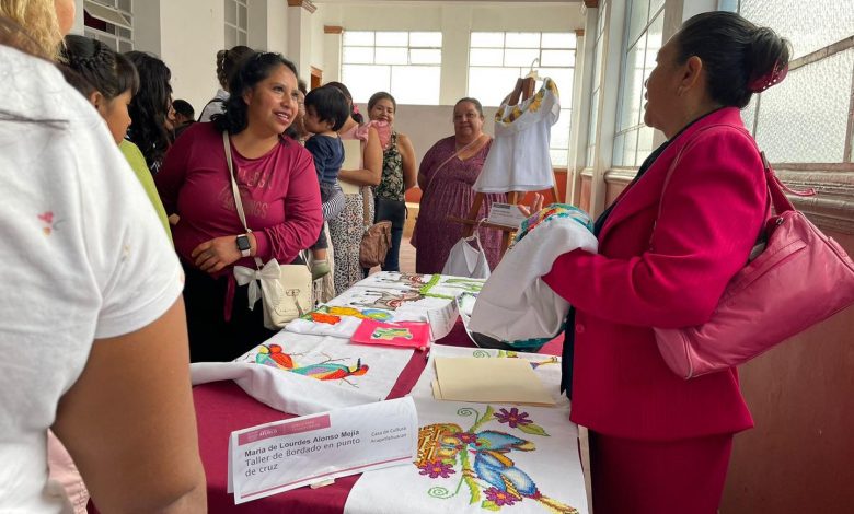 Los asistentes pudieron apreciar una variada gama de creaciones artísticas que realizaron los participantes de los talleres de “rescate de vestuario de China Atlixquense, pañoleta”, así como el taller de “bordado en punto de cruz”.