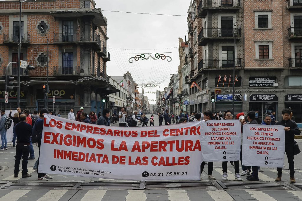 El corte de circulación se originó por la demanda de que sean reabiertas algunas calles del centro que han sido cerradas por el Ayuntamiento de Puebla, como parte de una estrategia que busca evitar la instalación de vendedores ambulantes.
