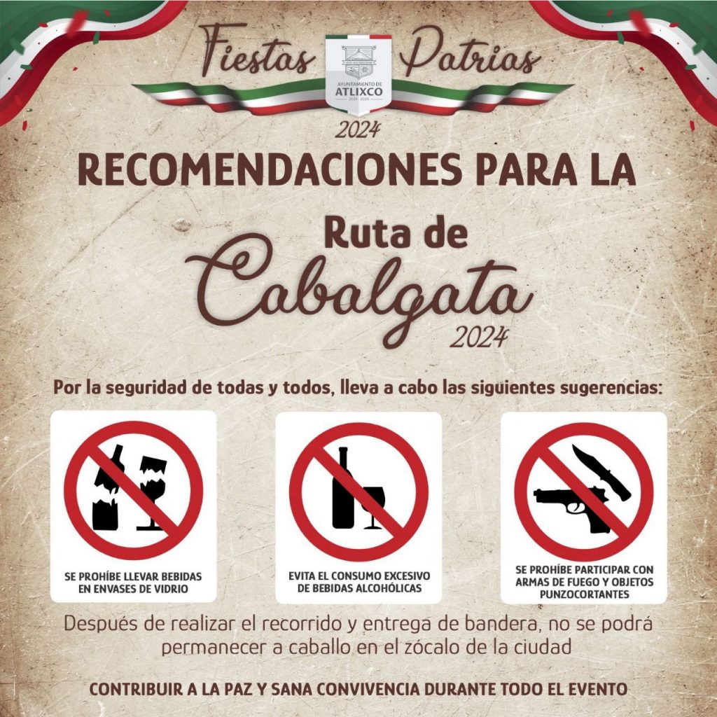 Asimismo, cuerpos de Protección Civil, Bomberos y atención prehospitalaria y voluntarios, se ubicarán en la periferia donde se llevará a cabo la tradicional cabalgata el 14 de septiembre, así como la noche del 15 de septiembre con la ceremonia del Grito de Independencia, el desfile Cívico Militar del 16 de septiembre y por la noche de ese mismo día, el espectáculo de pirotecnia debajo impacto.