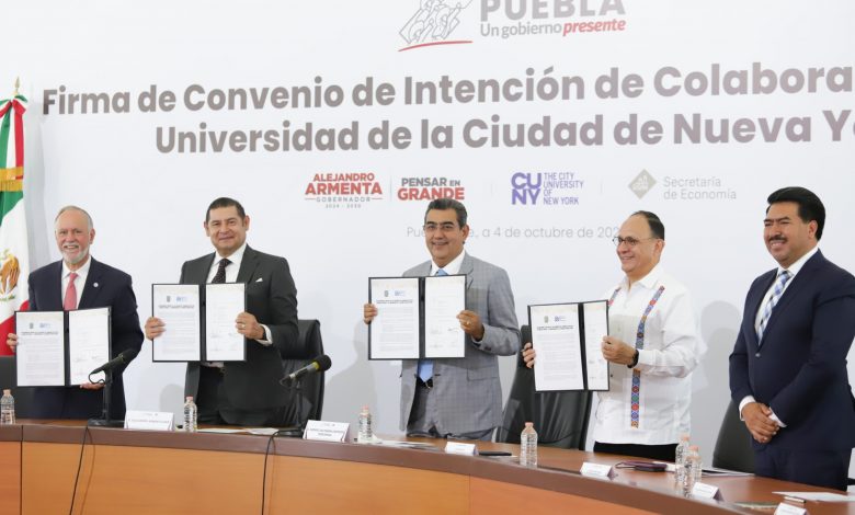 El gobernador Sergio Salomón acompañó a su homólogo electo, Alejandro Armenta Mier en la firma de convenio entre el próximo Gobierno del Estado y la Universidad de la Ciudad de Nueva York
