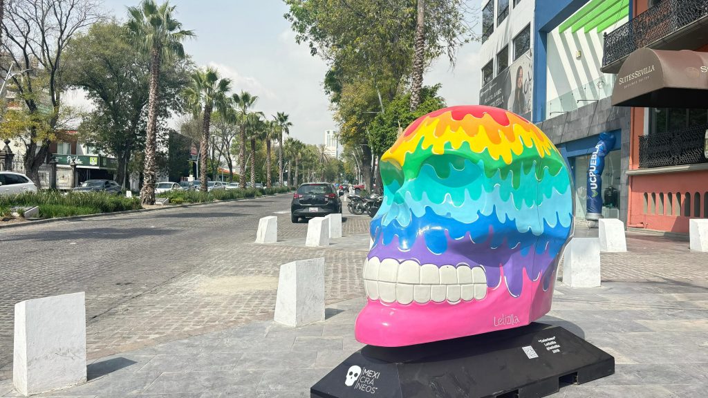 “La Puerta Negra” de Alex Lechuga; “Paraíso Mexicano” de Karina Kobeh y “En Otra Vida” de Bellazetín. Cada cráneo monumental llama a reflexionar sobre la existencia, la vida, la muerte y la identidad cultural.