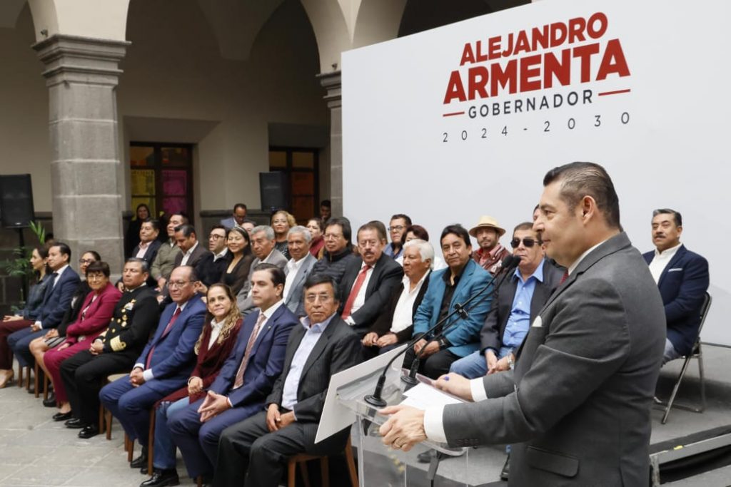 El gobernador electo de Puebla, Alejandro Armenta Mier, encabezó una rueda de prensa ante medios de comunicación para dar a conocer que propondrá la legalización de la castración química contra violadores y el uso de PPS en su administración, entre otros temas.