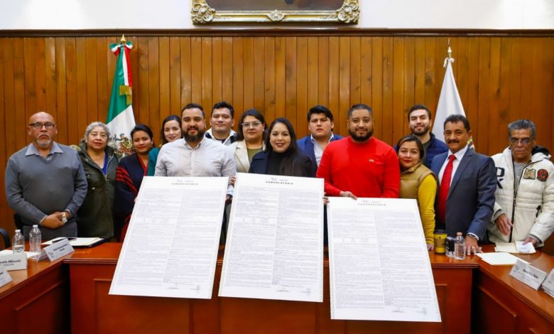 Finalmente, junto con el cuerpo de regidores, la presidenta municipal, Tonantzin Fernández, el Secretario General del Ayuntamiento, José Alcudia, y el Síndico Municipal, Iván Cuautle, acudieron a pegar la convocatoria a las afueras del Palacio Municipal y el Museo Caballero Águila, con la consigna de hacerla llegar a cada una de las juntas auxiliares.