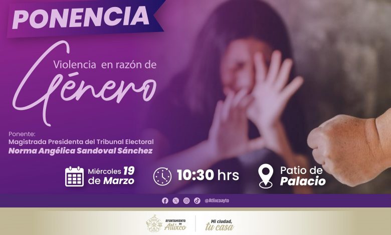 La ponencia se realizará en el patio de palacio municipal de Atlixco y tiene como objetivo sensibilizar a la población para prevenir y erradicar la violencia contra las mujeres en el municipio de Atlixco.