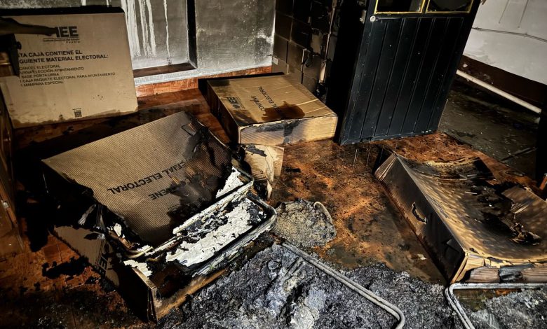 Según las autoridades electorales, el incendio fue provocado por un objeto que impactó en el edificio.