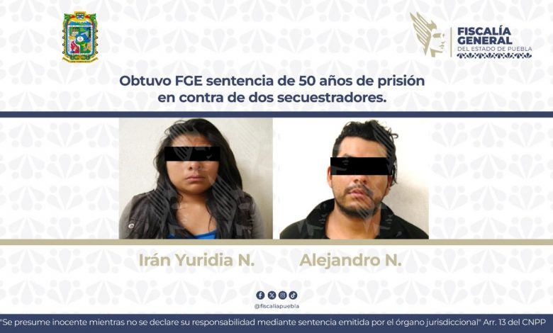 La Fiscalía General del Estado de Puebla logró una sentencia de 50 años de prisión para Alejandro N. y Yuridia N., tras comprobarse su participación en un secuestro agravado ocurrido en Tlachichuca en mayo de 2017.