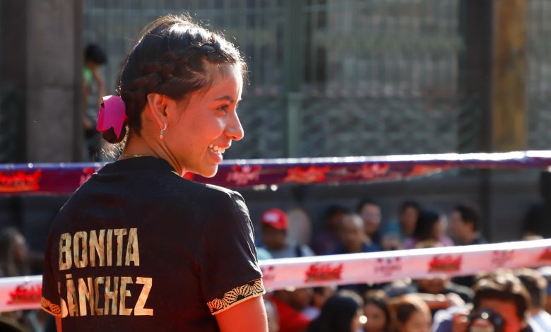 La pugilista poblana Gaby “La Bonita” Sánchez realizó un entrenamiento público en el Zócalo de Puebla como preparación para la tercera defensa de su cinturón plata del Consejo Mundial de Boxeo (CMB).
