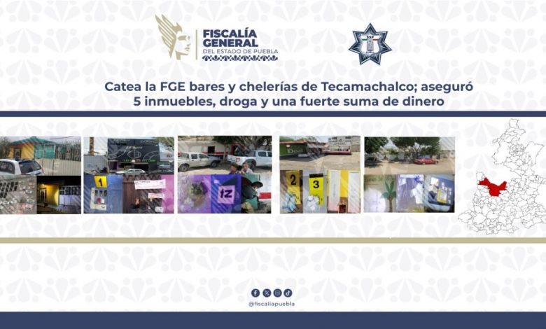 La Fiscalía General del Estado (FGE) de Puebla, en colaboración con la Secretaría de Seguridad Pública (SSP), llevó a cabo operativos simultáneos en bares y chelerías del municipio de Tecamachalco, logrando resultados en la lucha contra el crimen organizado.
