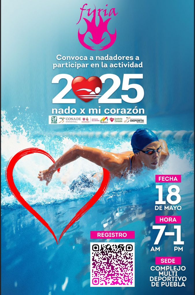 Organizado por FURIA Eventos Deportivos y el Instituto Municipal del Deporte de Puebla, este evento altruista invita a personas de todas las edades y niveles a nadar un kilómetro como símbolo de compromiso con la prevención de enfermedades del corazón. La participación es completamente gratuita.