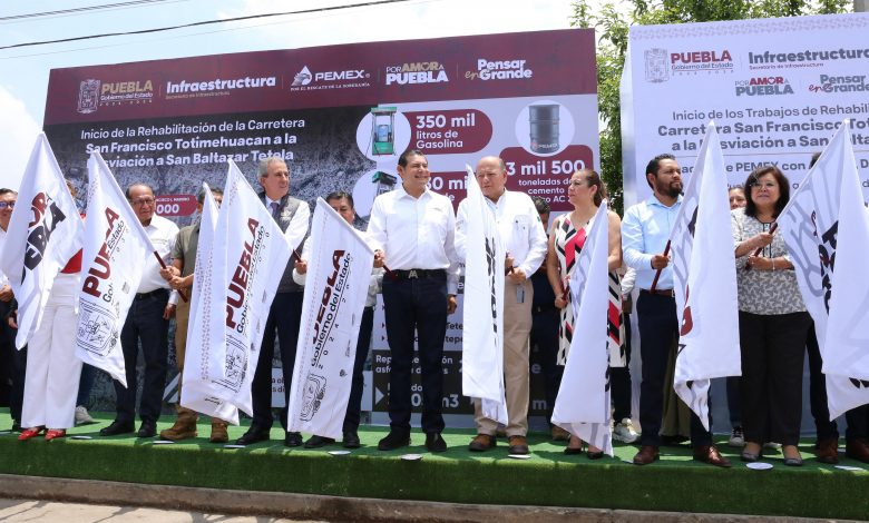 Dieron inicio los trabajos de rehabilitación en la carretera San Francisco Totimehuacan a la desviación a San Baltazar Tetela, con apoyo de Petróleos Mexicanos (PEMEX).