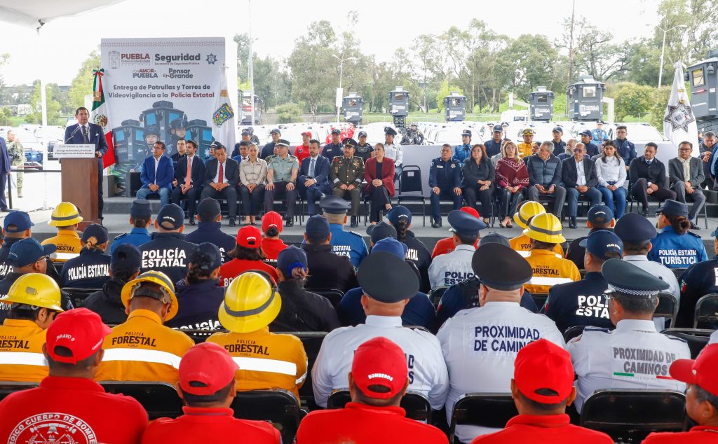 Durante la entrega de 100 nuevas patrullas y 10 torres de vigilancia, cuyo objetivo es mejorar la capacidad de respuesta y fortalecer las capacidades en materia de seguridad, el gobernador de Puebla, Alejandro Armenta refrendó el compromiso de su administración con la seguridad de las y los poblanos, al ser una prioridad y un derecho.