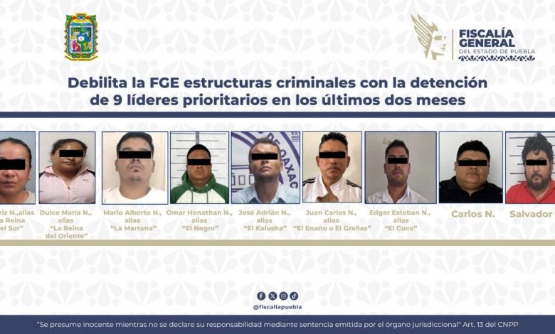 La Fiscalía General del Estado informa que como resultado de las acciones de inteligencia e investigación emprendidas para desarticular organizaciones delictivas en el estado de Puebla, en los últimos dos meses del año han sido detenidos nueve líderes criminales identificados como objetivos prioritarios, logrando debilitar a las principales bandas generadoras de violencia y desestabilización social.
