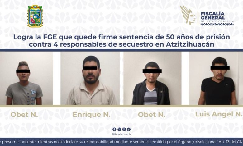 La Fiscalía General del Estado informó que la sentencia dictada el 9 de marzo de 2023, ha causado ejecutoria contra Luis Ángel N., Enrique N., Obet N. y Obet N., por su responsabilidad penal en la comisión del delito de secuestro agravado cometido en el municipio de Atzitzihuacán.