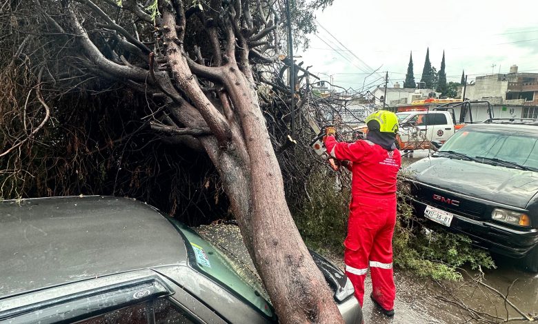 Por lo anterior, personal de Protección Civil acudió a la colonia San Rafael Oriente, donde fue reportada la caída de un árbol que afectó la estructura de un automóvil estacionado.