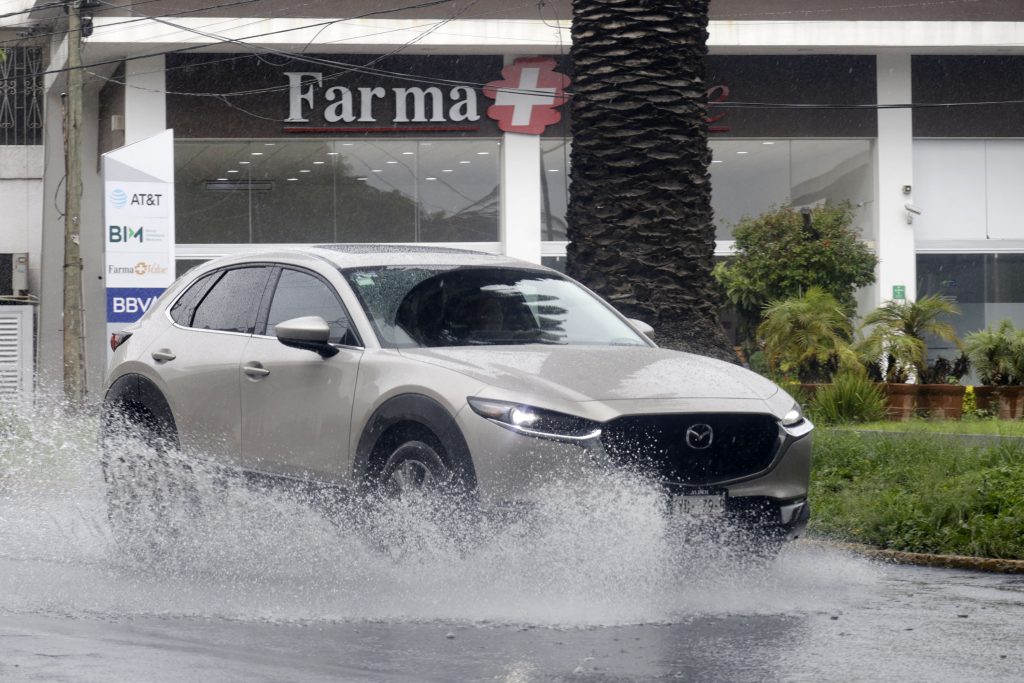 Se recomienda reducir la velocidad, mantener una distancia segura entre vehículos, encender las luces en todo momento y evitar cruzar zonas con encharcamientos o corrientes de agua.