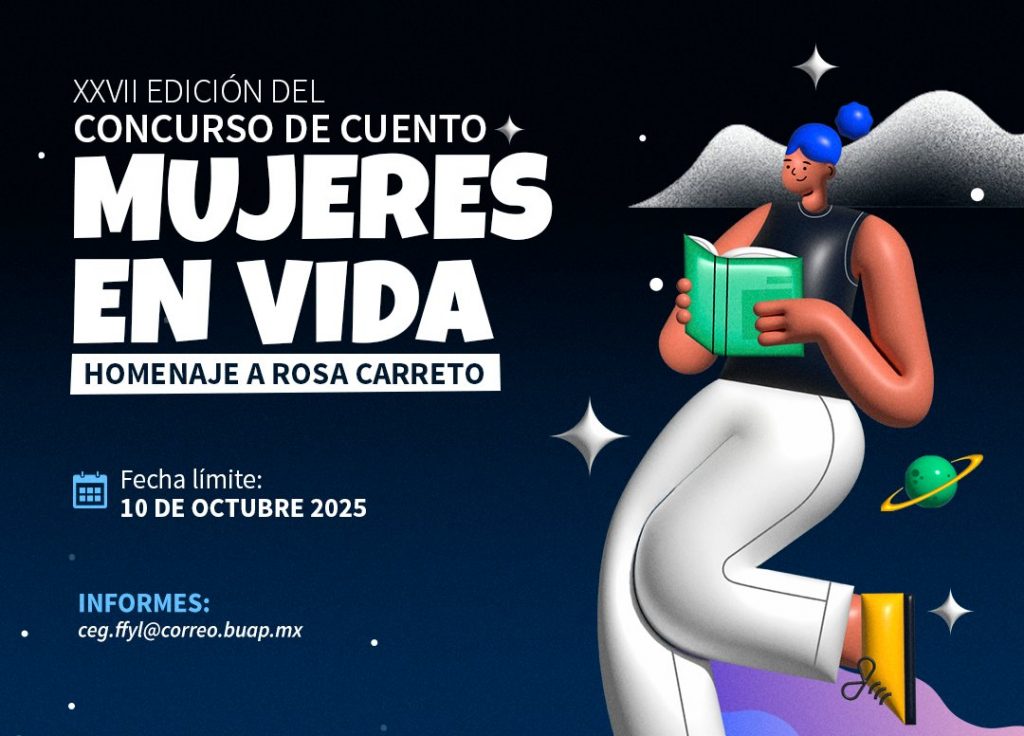 La Facultad de Filosofía y Letras de la Benemérita Universidad Autónoma de Puebla invita a todas las mujeres hispanohablantes residentes en México a participar en la XXVII edición del Concurso de Cuento Mujeres en Vida, dedicado este año a rendir homenaje a Rosa Carreto.