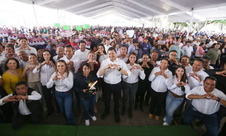 HUEJOTZINGO, Pue. — El gobernador Alejandro Armenta encabezó la entrega de módulos de maquinaria agrícola y apoyos productivos, como parte del programa “Seguridad con Bienestar”, una estrategia que busca fortalecer la riqueza comunitaria a través de desarrollo económico, obras participativas y tecnificación del campo poblano.