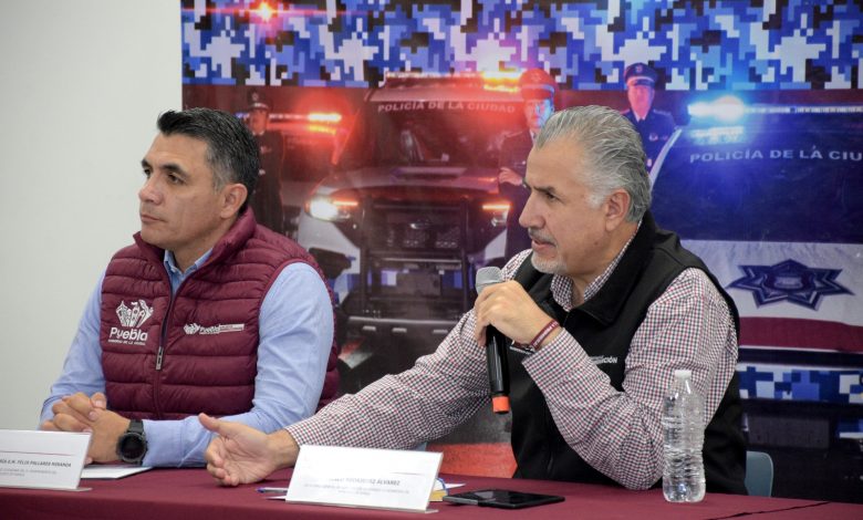 En rueda de prensa, Pallares Miranda, presentó los operativos que se han implementado en las 17 juntas auxiliares del municipio de Puebla para reforzar la vigilancia.