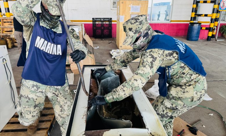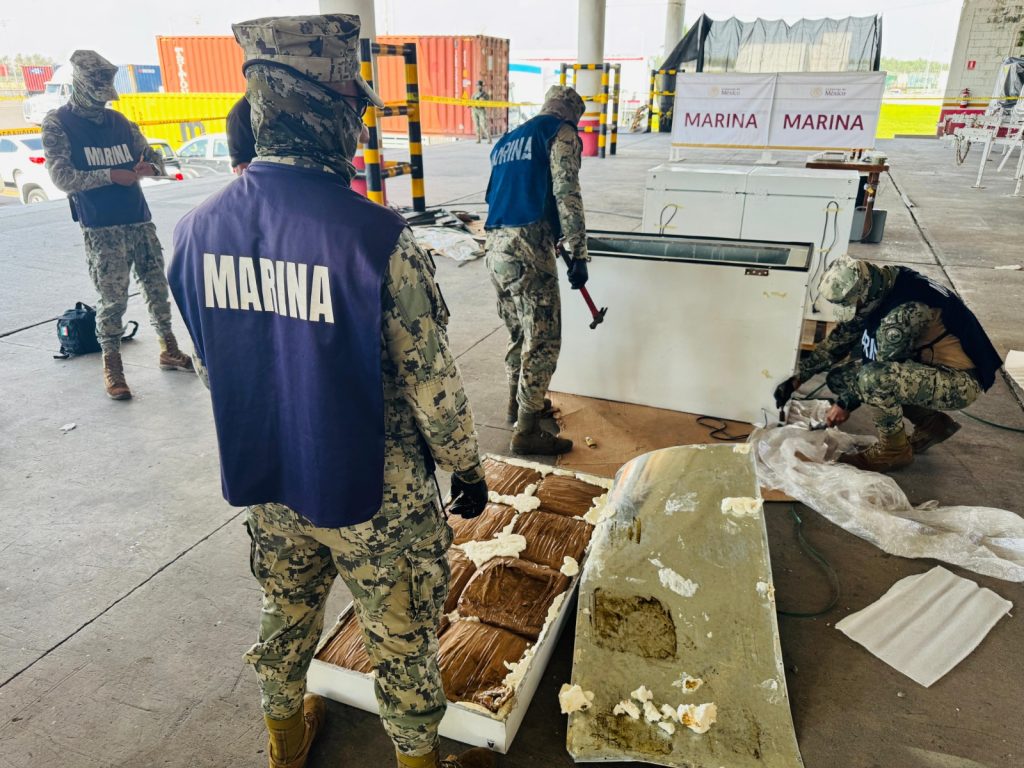 El hallazgo se dio durante una inspección rutinaria, en la que personal naval detectó irregularidades en la mercancía declarada como “congelador horizontal tipo cofre”. Con apoyo de equipo especializado y binomios caninos de la Secretaría de Marina y la Agencia Nacional de Aduanas de México (ANAM), se confirmó la presencia de la sustancia ilícita.
