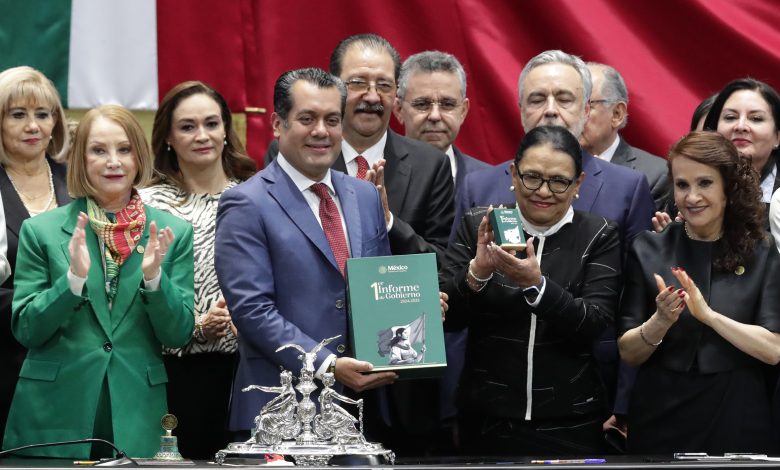El diputado Sergio Carlos Gutiérrez Luna, presidente del Congreso de la Unión, recibió el informe, destacando el histórico hecho de ser el primer informe presentado por una mujer presidenta en 200 años de vida independiente del país.