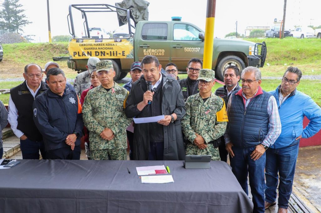 El gobernador Alejandro Armenta señaló que, a través de un grupo especializado de la Defensa y la Marina, rescatarán a 12 familias que se encuentran atrapadas en los techos en la comunidad de Tlalcoyunga, perteneciente al municipio de Huauchinango.