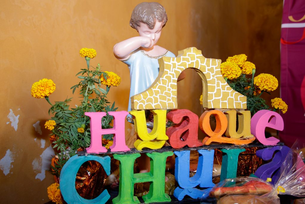 Los altares, dedicados a los difuntos del último año, son auténticas obras de arte que combinan elementos tradicionales como flores de cempasúchil, fotografías, velas.