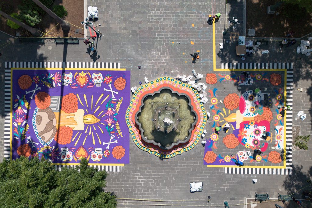 Por segundo año consecutivo artistas de Huamantla, Tlaxcala, instalan una alfombra monumental en el Zócalo de Puebla, con motivo de las celebraciones del Día de Muertos, que será inaugurada el lunes 27 de octubre.