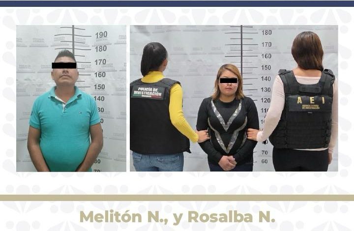 La Fiscalía General del Estado de Puebla informó sobre la aprehensión de Melitón N. y Rosalba N., señalados como presuntos responsables del delito de violencia familiar en agravio de sus hijas, de ocho y cuatro años.