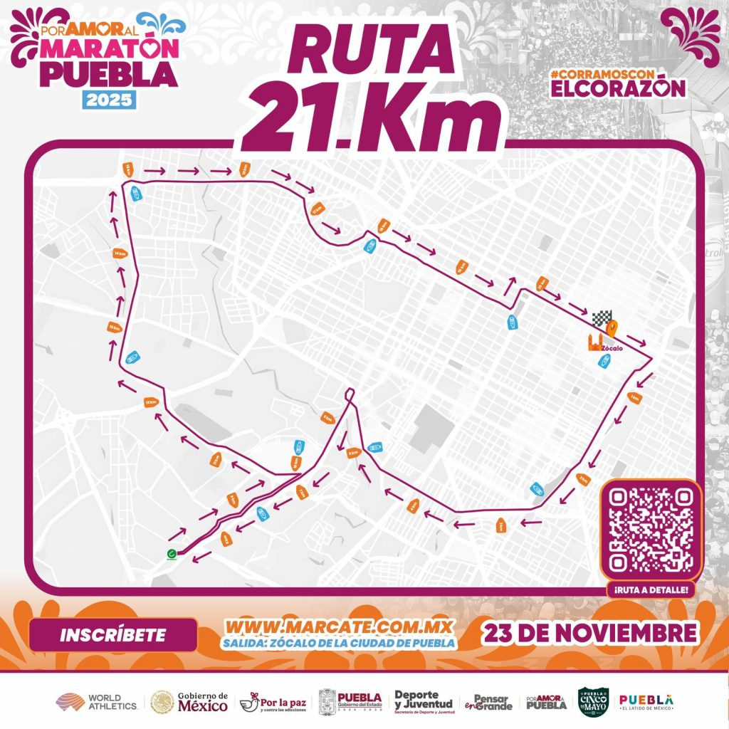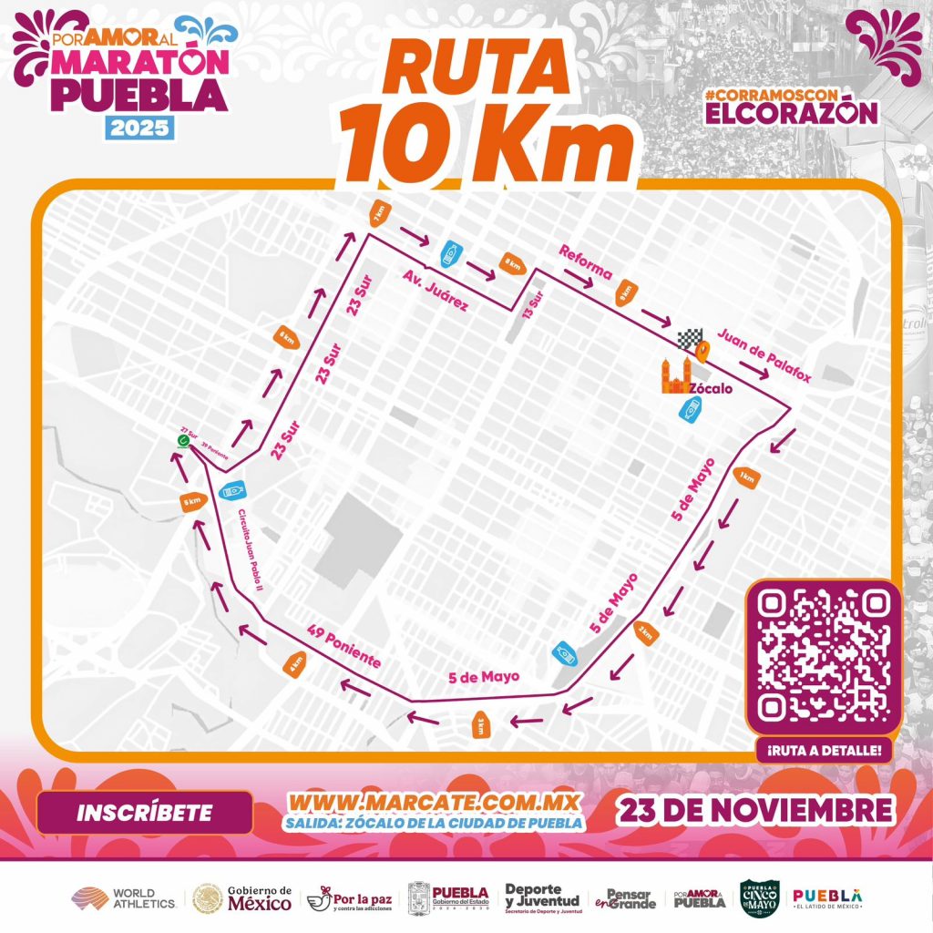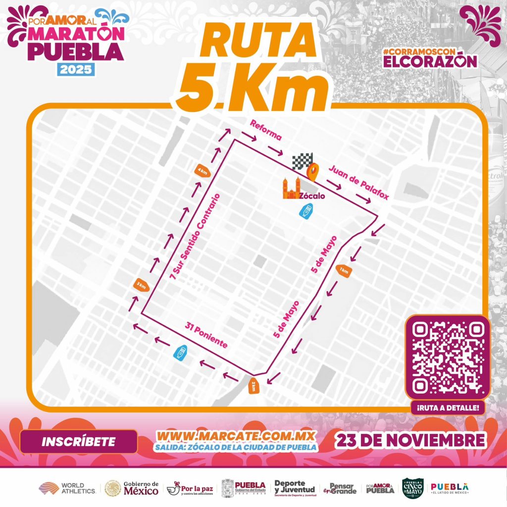 La ruta de 5 kilómetros iniciará en el Zócalo de Puebla y recorrerá avenidas emblemáticas como Juan Palafox y Mendoza, el Bulevar 5 de Mayo y la Avenida Reforma, ofreciendo un trayecto accesible para principiantes y familias.