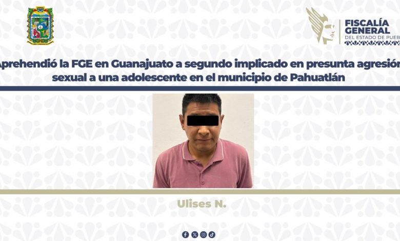 La Fiscalía General del Estado de Puebla, en colaboración con autoridades de Guanajuato, detuvo a Ulises N., señalado como probable responsable del delito de violación equiparada en agravio de una adolescente de 11 años. Este sería el segundo detenido relacionado con el caso.