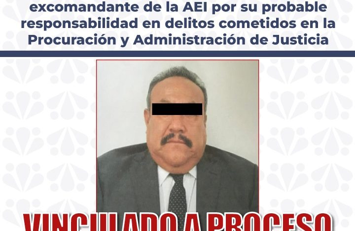 La Fiscalía General del Estado logró la vinculación a proceso de Alejandro N., excomandante de la Agencia Estatal de Investigación (AEI), por su probable responsabilidad en delitos relacionados con la Procuración y Administración de Justicia.