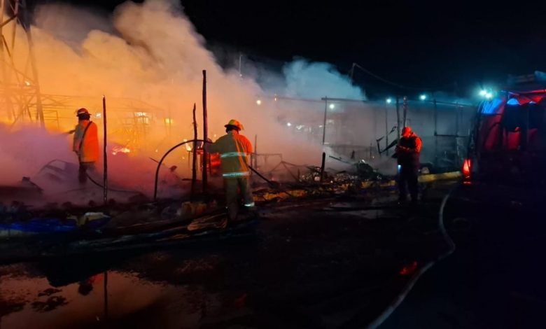 El siniestro, registrado a las 2:30 horas, consumió 30 huacales y dos tanques de gas L.P. de 20 kilogramos en fase activa. También se retiraron cilindros de gas para evitar mayores riesgos.