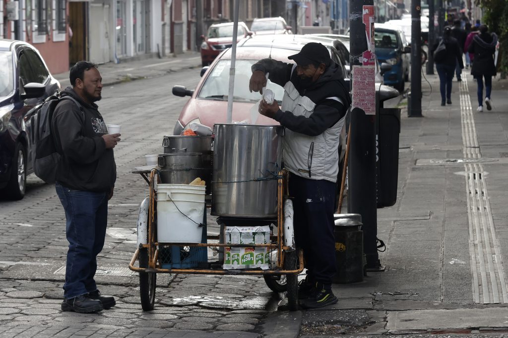 Poblanos caminan bien abrigados durante las primeras horas del día. Agencia Enfoque